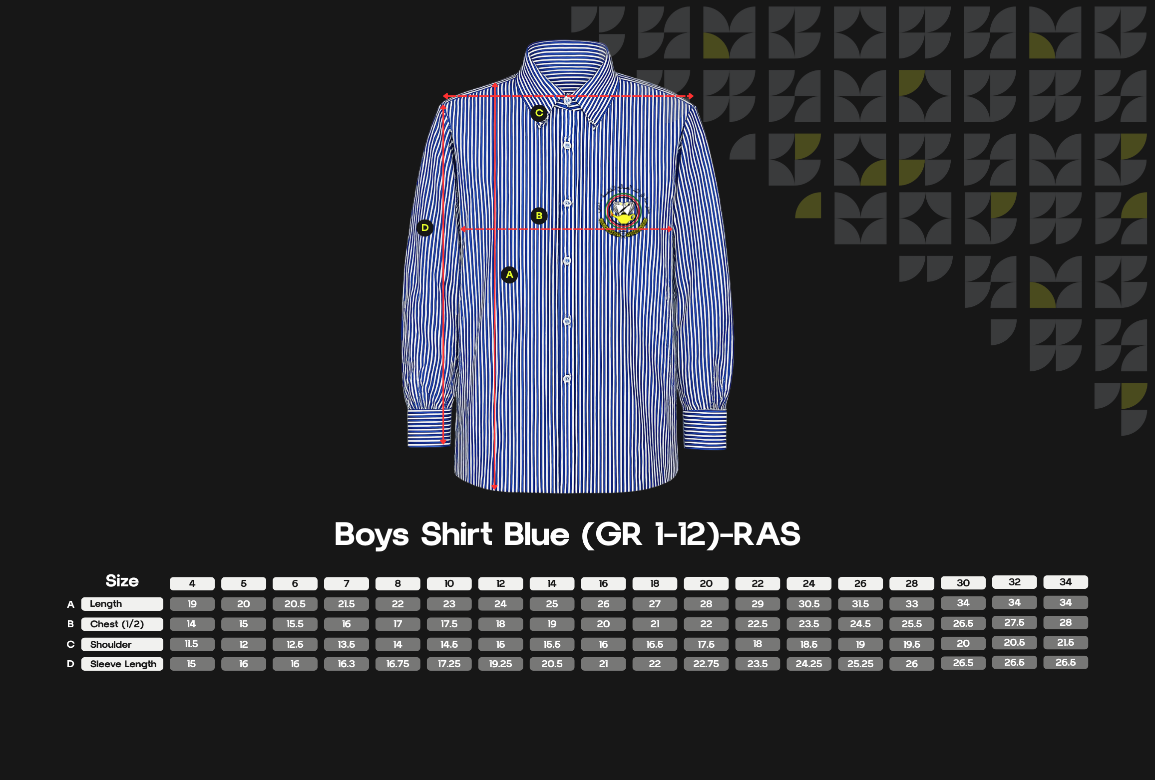 A neat and durable school shirt designed for boys in Grades 1 through 12. It is made out of a soft and breathable fabric. This shirt looks smart and also offers all-day comfort. Identity and style are both added through the striped design along with the school logo on the chest pocket.