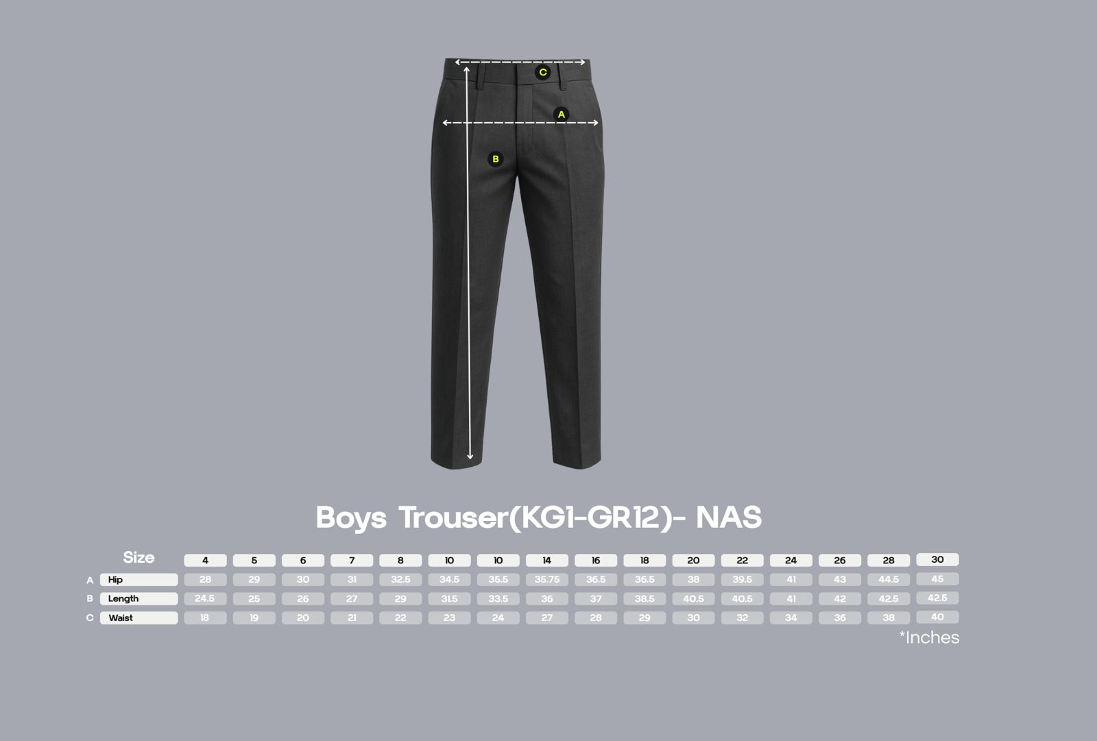 Classic school trousers designed for boys of Grades 6 to 12. Made from durable fabric with easy-care benefits, they provide comfort for everyday school use. The tailored design ensures neatness, giving a professional and smart appearance.