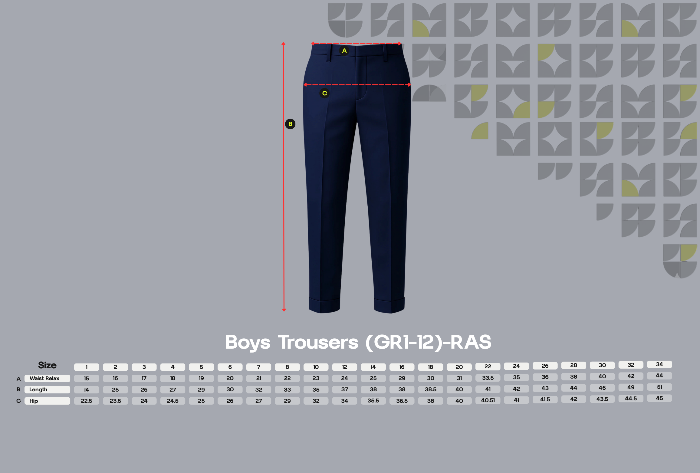 Classic navy trousers designed for boys from Grade 1 to Grade 12 offering comfort as well as endurance for everyday school wear. They are made of strong easy-care fabric. The tailored fit ensures style and practicality.