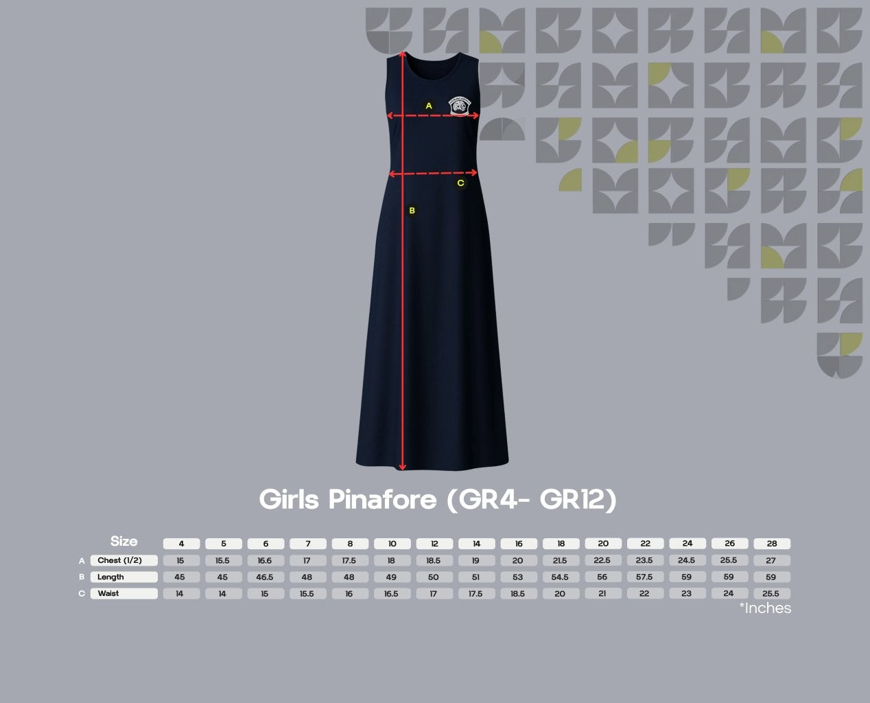 A smart school pinafore without sleeves featuring a square neck that gives comfort, mobility, and a sharp look.