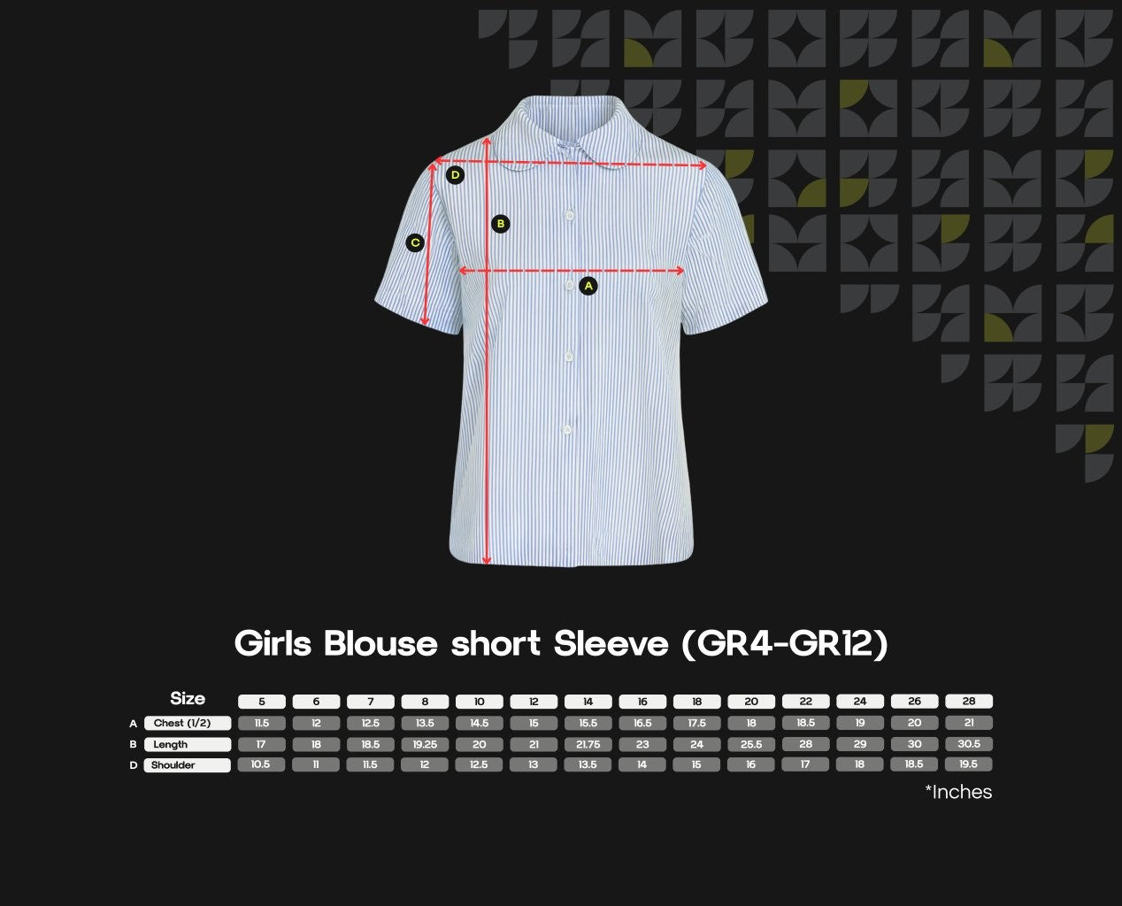 A formal short-sleeve blouse with front button closure, as well as classic collar offering a crisp and structured look, that is perfect for schoolwear.