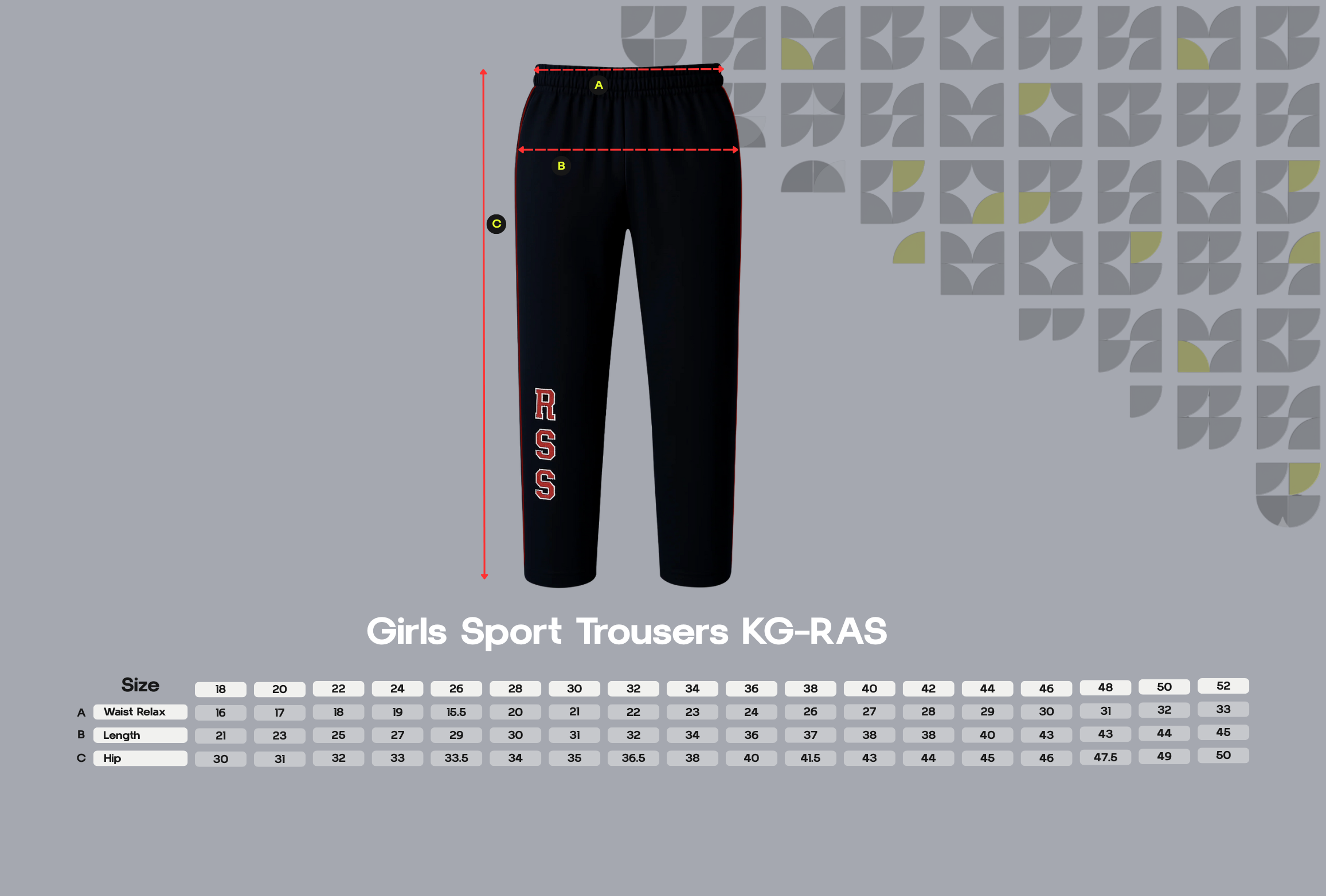 These comfortable sports trousers are tailored fit for girls, made for training sessions and active school days. They are made up of durable fabric to provide ease of movement. A touch of sporty look with a smart addition of the school initials.