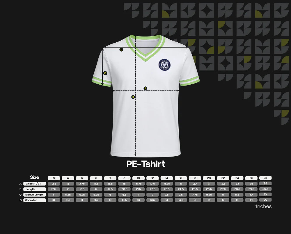 This official white V-neck t-shirt features short sleeves along with green contrast trim, offering a clean and comfortable school look. It has a regular fit and breathable fabric. It is ideal for daily wear.